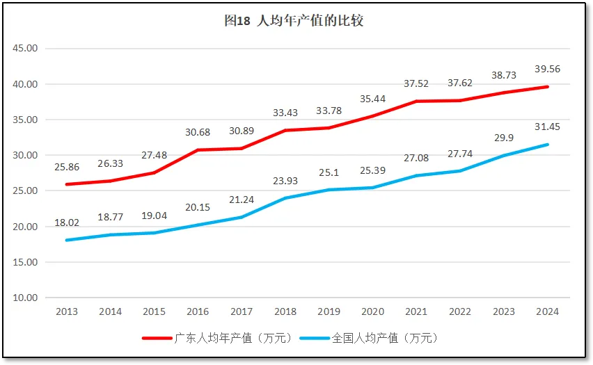 广东省检验检测机构人均年产值与全国的情况比较如图17所示。